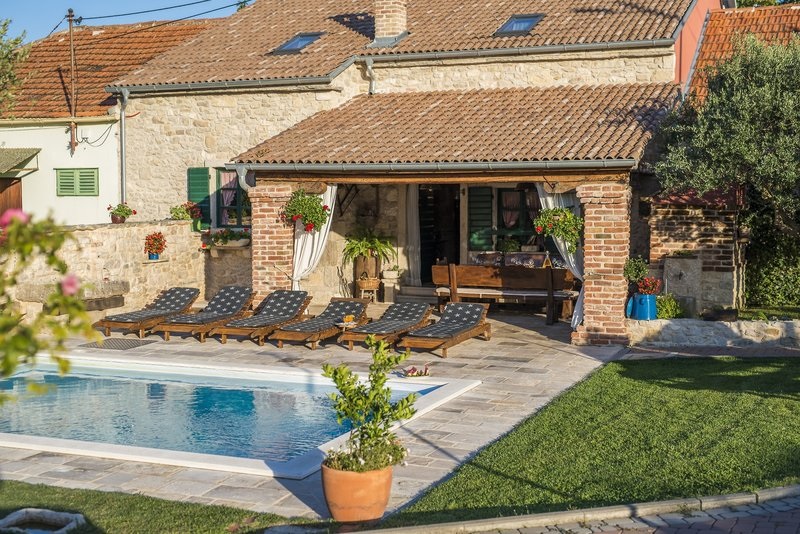 Das Haus Šisman in Zemunik Donji, nahe Zadar, vereint traditionellen Charme mit modernem Komfort und liegt nur etwa 10 Fahrminuten vom Meer entfernt. Das Haus bietet mit vier Schlafzimmern, Pool, Garten und Grill den idealen Rückzugsort. Eine großzügige Terrasse, ein überdachter Freisitz sowie die komplett ausgestattete Wohnküche mit Grillkamin laden zu entspannten und geselligen Stunden mit Familie und Freunden ein.