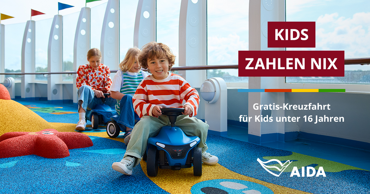 Kabinenpreis. Limitiertes Kontingent. Details: aida.de/familienaktion