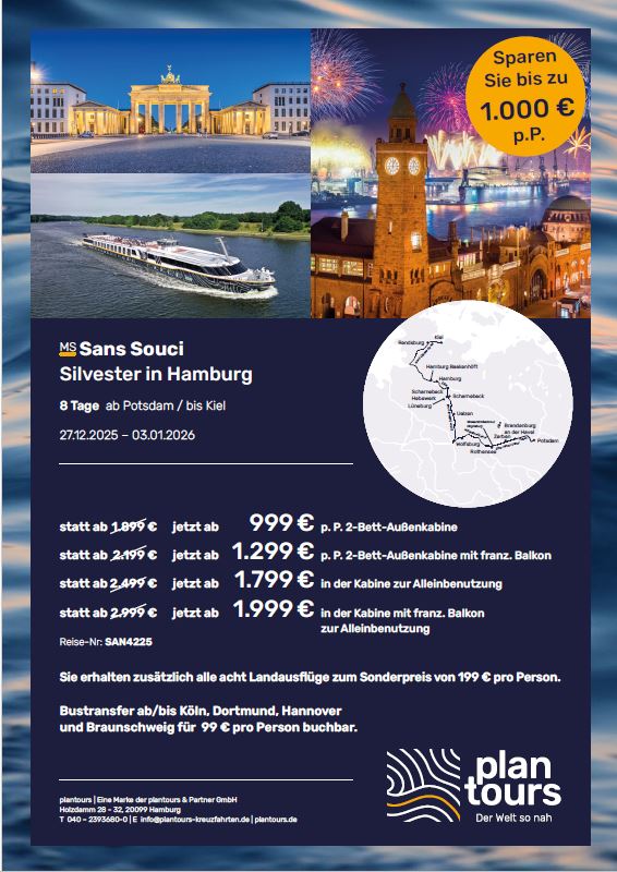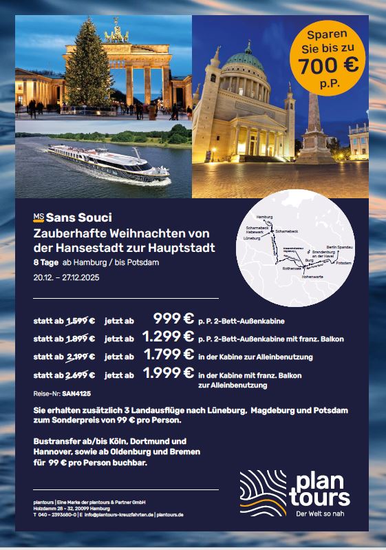 🎁 Inklusive: 3 Landausflüge nach Lüneburg, Magdeburg und Potsdam für nur 99 € p.P.